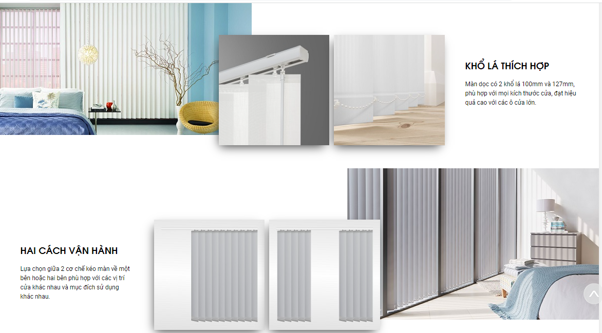 Rèm lá dọc với hệ phụ kiện nhỏ và phực tạp hơn các loại rèm khác. Nó liên kết với nhau giúp rèm có thể hoạt động xoay lật lá và kéo gọn sang 2 bên.