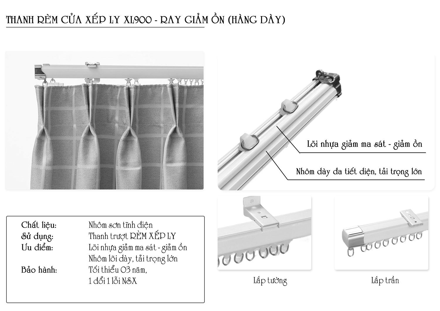 Phụ kiện thanh ray rèm dùng cho rèm may múi chiết bắt ngược trần hoặc bắt vào tường