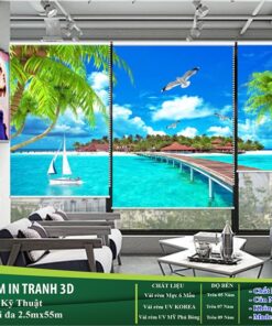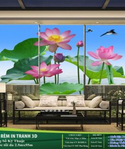 – Rèm cuốn tranh 3D Được in theo yêu cầu, kiểu in UV mực nhật và có hỗ trợ chỉnh sửa tranh có giá khoảng 550.000 vnđ/m2.