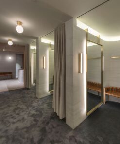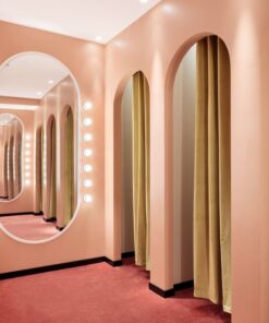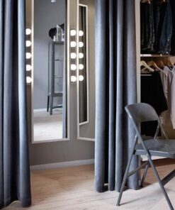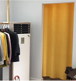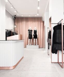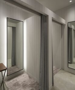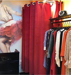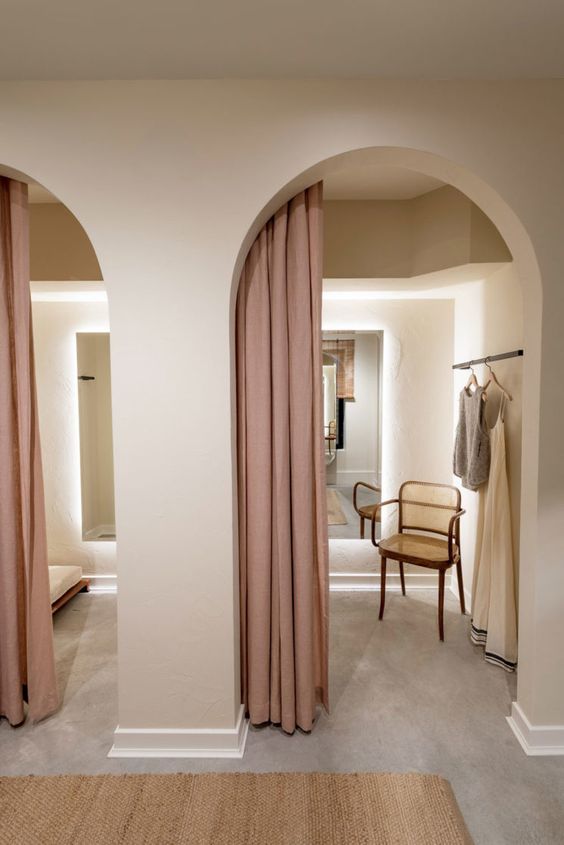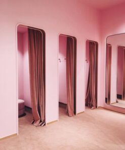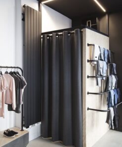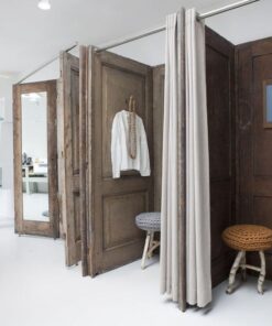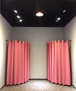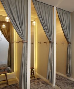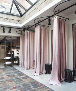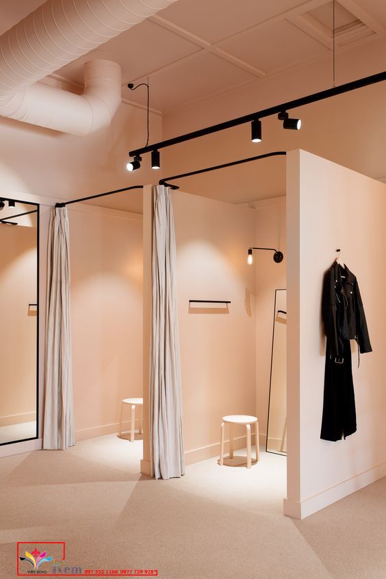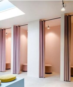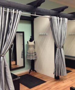 Các showroom bán sản phẩm quần áo có những phòng thay đồ. với khả năng che chắn kín kẽ giúp khách hàng cảm thấy thỏa mái và yên tâm khi thử đồ. Thường là những sản phẩm rèm vải có màu sắc sáng và trơn một màu.