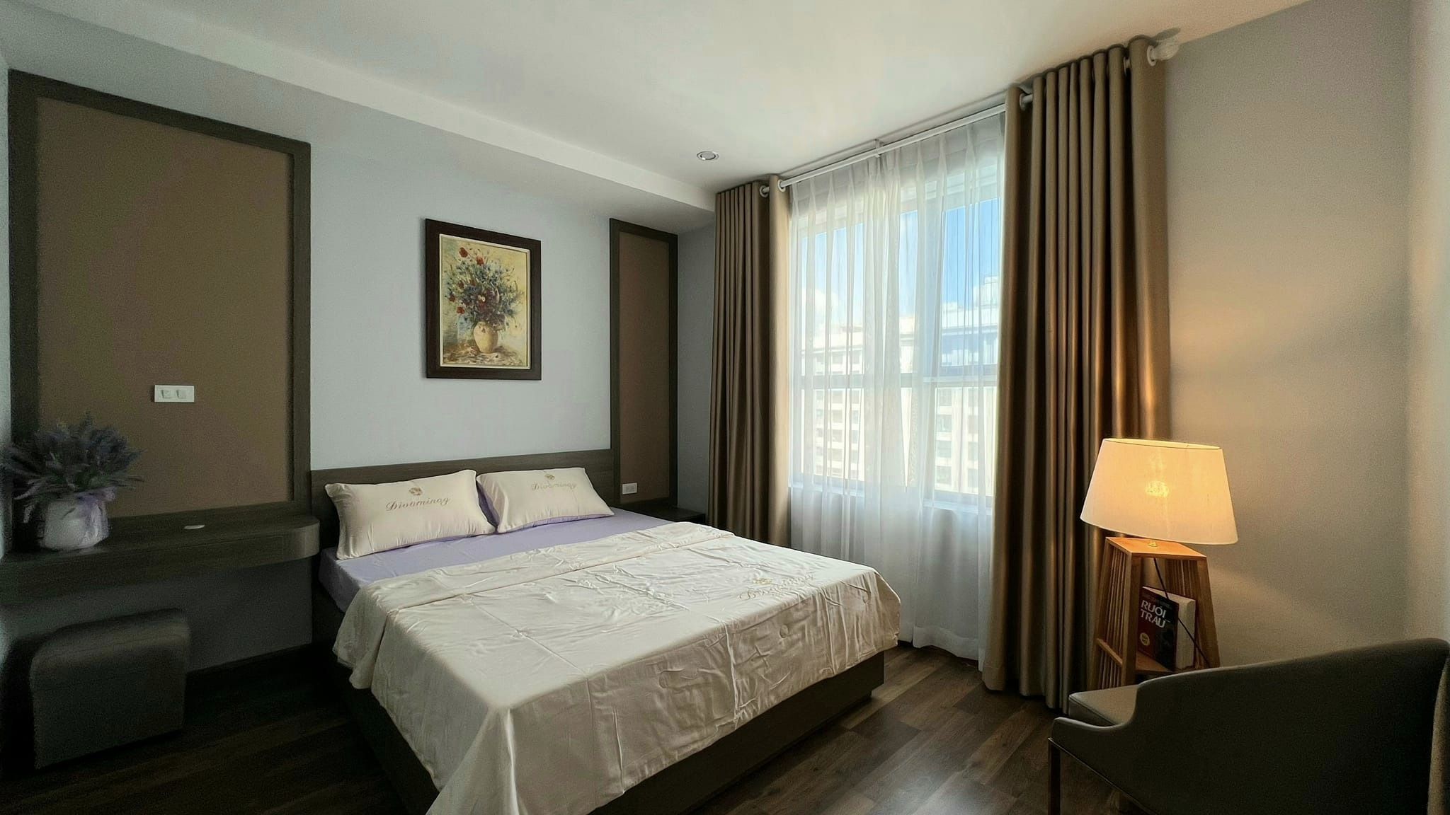 Giá rèm cửa 2 lớp loại trung bình có lớp vải chính chống nắng cản sáng 90-98% + lớp voan tùy chọn. Xuất xứ Đài Loan, Malaysia… từ 1.000.000 đến 1.200.000/m ngang cửa hoàn thiện (đã bao gồm full phụ kiện)