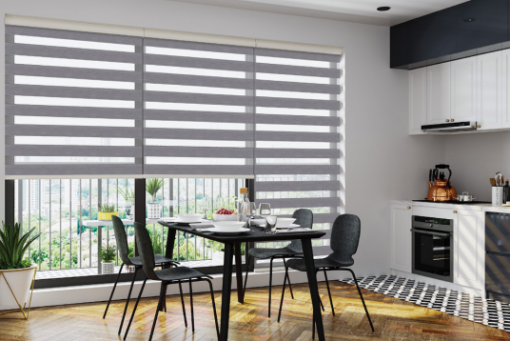 Mành combi với hai lớp vải tạo thành những nan xen kẽ, là một giải pháp hoàn hảo để điều chỉnh ánh sáng