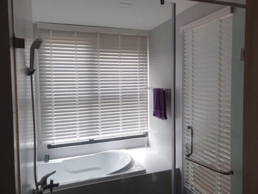 Không gian phòng tắm có các dạng như tắm bồn, Tắm sen vòi hoặc phòng tắm không có vách kính là những nơi cần sử dụng rèm dạng vải không thấm nước. Còn phòng tắm khô hoặc không gian phòng tắm có cửa sổ thông gió hoặc lấy sáng. Chúng ta có thể dùng các loại rèm như rèm cuốn lưới, hoặc rèm sáo nhựa chống nước.