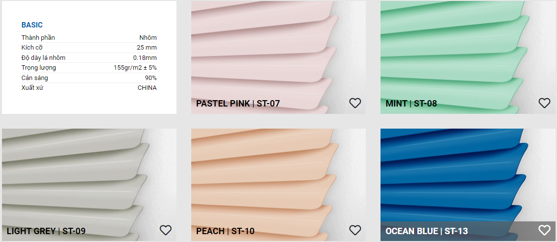 Rèm sáo nhôm có 2 phiên bản về độ rộng bản lá là 2.5cm và 5cm.