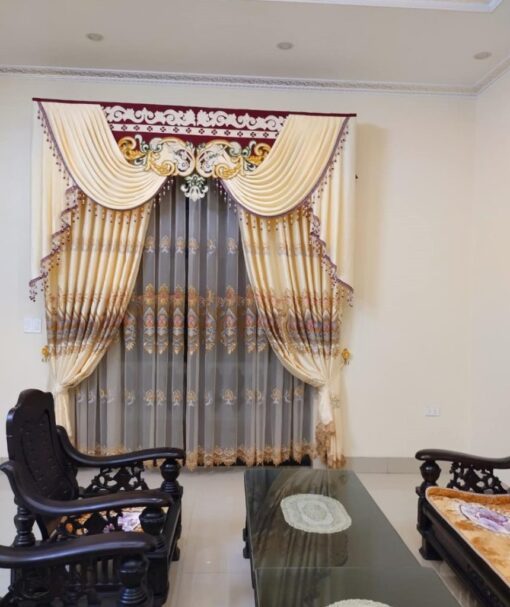 Một điểm khác biệt của bộ rèm tân cổ điển chính là phần yếm rèm. Nó là nét đặc trưng, làm tăng sức hút của bộ rèm trong một không gian sang trọng của ngôi nhà.