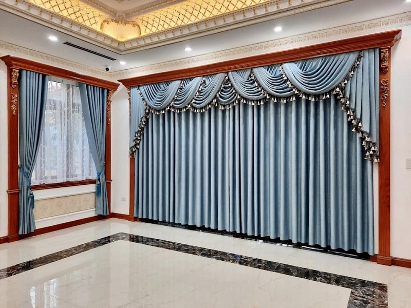 Một điểm khác biệt của bộ rèm tân cổ điển chính là phần yếm rèm. Nó là nét đặc trưng, làm tăng sức hút của bộ rèm trong một không gian sang trọng của ngôi nhà.